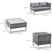 Modern 3 Piece Outdoor Rattan Set - Sofa, Love Seat, Table