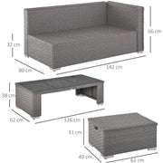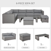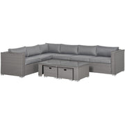Bring comfort to your outdoor times with this Outsunny furniture set. Formed of three double corner sofas, a long coffee table and two footstools. Aluminium makes the frame for a strong structure, wrapped in UV and fade resistant PE rattan, so each piece is durable and suitable for outdoor use. Each piece finished with cushion s for comfort.