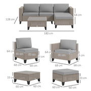 • Flexible Arrangements: This set comprises an armless chair, two corner chairs, a footstool, and a sleek glass-top table, offering numerous setup possibilities to complement your outdoor decor.