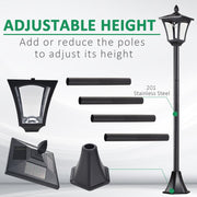 The stylish outdoor solar light post lamp from Outsunny features removable and dimmable LED light and automatic light sensor for convenient lighting in dark. 4 pieces of a-Si solar panels on the top, the energy-saving garden lamp can light up to 6-10 hours when fully charged. The stainless steel construction with a plastic base provides both durability and stability. The water-resistant materials and the chic style make the solar light an ideal addition to your gardens, pathways,patios, decks, poolside and more.