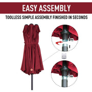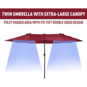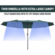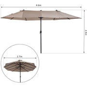 - Double canopy design garden umbrella covering a 4.6M diameter area