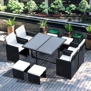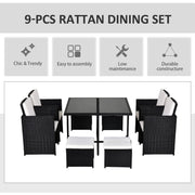 8 Seater Rattan Dining Set, Black