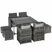 Rattan Cube Dining Set, Mixed Grey, Seats 8