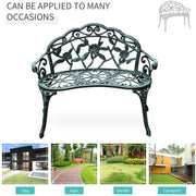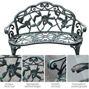 - Stylish Bench: Beautiful, antique style bench with floral rose accents and Verdigris finish will add elegance to your porch or backyard