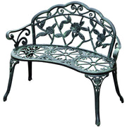 This antique style cast aluminum bench is a great addition to any garden. Made with the latest casting methods of aluminum, and finished with an antique green colour. It has a great rose pattern and a curved front to give added style and comfort. An added feature to any garden which can last for years.