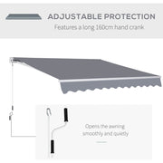 With a thick sun-shielding canopy fixed on an aluminium frame, this 2.95 x 2.5m awning from Outsunny will give you all the shade you need this season. The manual design means you can set it up wherever needed - whether it's above a door or window, and it easily mounts onto your chosen surface with all accessories included in the package. Finished with a crank handle for easy operation. It's time to enjoy the beauty of outdoors more than ever before.