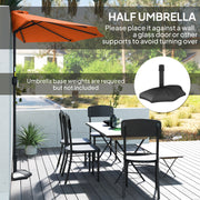 Half Parasol for Balcony or Small Garden with UV Protection and Easy Crank Handle, Orange