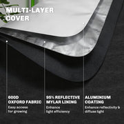 • Reflective Mylar Lining: Retains 95% of light to maximise photosynthesis and encourage lush plant growth
