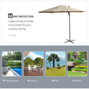 This Outsunny umbrella is a great solution for your outdoor living. With a large 3m x 2.5 m span it can cover a large area giving you enough shade from the sun. It is made from Steel and aluminium frame, using a cantilever system. The angle can also be adjusted by raising and lowering, with the the ability to open and close the umbrella by using the crank handle. This is an ideal umbrella to have in your patio, Garden or decking and will be able to hover over your garden furniture. This is a great system allowing for it to placed on one side and not come in the way. The umbrella can be angled in 4 positions and can also swivel for correct positioning. The umbrella is fixed to a bottom cross plate which can be secured using weights for stability. A great item to have as part of your outdoor living and will match any outdoor decor.