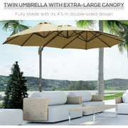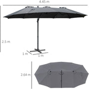 Spacious canopy: With a double-sized 4.45m diameter, this parasol provides ample shade to cover and protect a larger outdoor area, making it perfect for gatherings with family and friends.