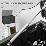 Experience the perfect blend of toughness and style with this Outsunny 336L garden storage box. This spacious outdoor storage solution is ideal for keeping your garden tools, cushions, and accessories neatly organised. Made from durable plastic with a double-wall design, it's built to withstand the elements. The lid opens smoothly and stays open for easy access, and with two handles and wheels, you can move it around effortlessly, even when fully loaded.