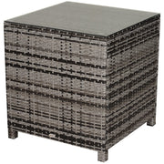 Ensure you have the perfect spot to keep everything you need close to your outdoors, thanks to this side table from Outsunny. Square in shape, it has been made with a powder coated and galvanised steel frame, keeping the structure in check and stable, with PE wicker rattan wrapped on the outside, giving it a versatile look which copes with mild weather damage to ensure it will last in your furniture for many seasons. A 5mm thick tempered glass sits on the top, giving it a sleek look and an even surface which can be cleaned easily. Finished with four legs for balance.