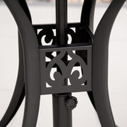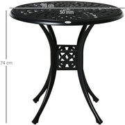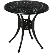 Upgrade your outdoor dining area with this stylish round garden table from Outsunny. Crafted from strong and weather-resistant cast aluminium, this table is designed to withstand the elements. The unique cut-out design adds a touch of elegance and character to your outdoor space. Complete with a central parasol hole, it provides a convenient spot for shade on sunny days. Pair it with bistro chairs for a cosy and inviting dining setup.