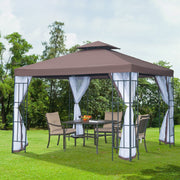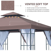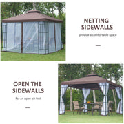 This Outsunny gazebo is a great way to expand outdoor space. with elegance. The steel frame makes it extra sturdy, formed into a spacious 3m x 3m size - you can host plenty of people at once. The polyester canopy creates mild shelter below, with its two-tier design helping to promote airflow in and out. Mesh netting to shield you from annoying bugs and more. Complete with anchoring accessories. You deserve some comfort in the sun: create your own personal oasis with our garden gazebo.