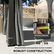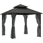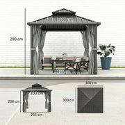 3x3m Metal Roof Garden Gazebo with Privacy Curtains and Mesh Sides for Year Round Shelter Grey