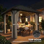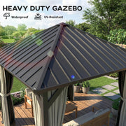 3x3m Metal Garden Gazebo with Waterproof Galvanised Steel Roof and Privacy Curtains for Year Round Outdoor Shelter Black