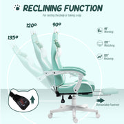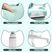 Reclining Office Chair with Cat Ear Design and Footrest for Home or Study Light Blue White