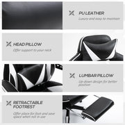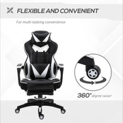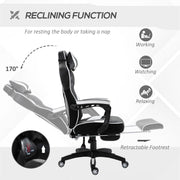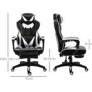 Fulfil your need for some serious style with this gaming chair with a footrest from Vinsetto. It's fitted with thick sponge for comfort and wrapped in sleek faux leather with contrasting panels. Comfortable in design, it features a high back, armrests, a five-wheel base and the desk chair can swivel around 360°. Whether it's work or play, the gaming computer chair is the best seat.
