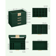 - Multiple Tiers for Organised Storage: This jewelry box boasts 4 tiers, including 3 with compartments of varying sizes for small items and a spacious bottom drawer for larger pieces like sunglasses and watches.