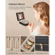 - Chic and Thoughtful Design: The built-in mirror is perfect for on-the-go touch-ups, while the removable dividers cater to larger accessories. The secure zipper closure keeps everything safely enclosed.