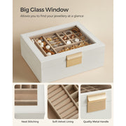 Songmics Jewellery Box With Glass Top White