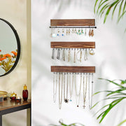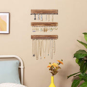 • Elegant Design: Crafted with a rustic brown wood tone, complemented by a romantic iron bar and elegant hooks, these jewellery holders are a chic addition to any wall.
