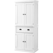 This HOMCOM tall storage cabinet is an ideal solution for any kitchen. Made from MDF with reinforced backboards, it is ideal for storing all your kitchen items from accessories, utensils, dry good and even your cookbooks. The kitchen larder cupboard has 4 doors with 3 adjustable shelves for you to position as required. The door handles and knobs are having a brushed nickel finish, giving the unit elegance and style. This is a great unit to have to match any room décor.