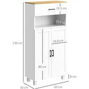 Kitchen running out of space? Then this HOMCOM free standing kitchen unit will get clutter organised in no time. Say hello to its multi-storage design: features a top drawer for utensils and napkins, an open countertop for plates, and a bottom cupboard for pots, dry goods, or plastic containers. Made from particle board frame, this kitchen pantry is sturdy, complete with anti-tipping straps for safety.
