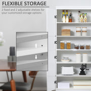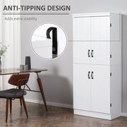 Need some more storage options in the kitchen? This HOMCOM kitchen larder cupboard is here to help. Neutral White colour, paired with the clean-cut shape makes it a modern touch for your home kitchen and dining spots. Six tiers provide plenty of storage room, this kitchen cabinet is safely guarded by the four front doors with sleek metal handles. Home tidiness, made effortless.
