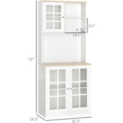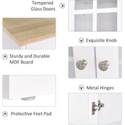 Kitchen Sideboard, Glass Doors, White, L80 x W37 x H183cm