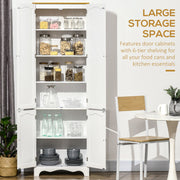 Kitchen running out of space? This HOMCOM tall storage cabinet will help tremendously. It comes with six tiers inside, divided into two sections - plenty of room for keeping all kitchen essentials stored. The white and wood-effect design is classic and versatile - it'll blend itself in beautifully with ease. Now you'll never an untidy kitchen and dining space again.