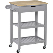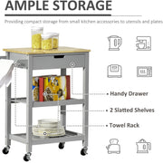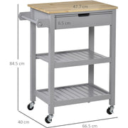 Grey Kitchen Trolley, Rubberwood Worktop, Storage