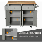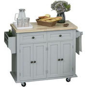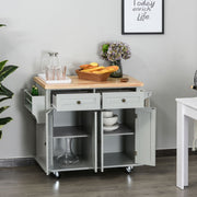 Kitchen Island on Wheels, Rubber Wood Top, Storage, Grey
