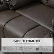 HOMCOM knows the first thing you want to do after a long work day, is relax. This recliner armchair gives you the perfect spot to do that. A large square shape to give you plenty of room to sit, it thickly padded all over - simply sit down and sink in. Features a 135° reclining back, with manual footrest for extra relaxation. Faux leather upholstery for style, complete with two cup holders and two pockets for handiness.