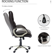 - Comfortable: An executive office chair which is great for all-day use. Padded all over, with the high back and armrests giving you support. Seat gently rocks back and forth.