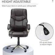 Take the stylish approach to your work, with full backing from this HOMCOM computer chair. The faux leather upholstery, paired with the large size and supportive back, creates a strong, stylish look you'll love having in your space. It features a swivel seat, fixed armrests, a tall back and padded seat to keep you supported and comfortable - perfect for all-day working. This comfy chair is completed with five wheels to move around easily.