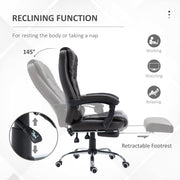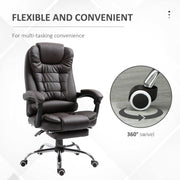 Are you still looking for a comfortable office chair? Our HOMCOM computer chair features thick padding covered with PU leather, you can drift blissfully into a relaxed state anytime you want. With height adjustment, headrest, lumbar support, and 360° swivel seat, this executive office chair helps to keep you relaxed and reduce body pressure. The reclining backrest and retractable footrest allow you to have an afternoon nap. Take your productivity to the next level with this comfy chair.