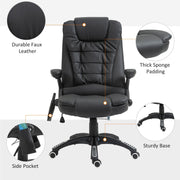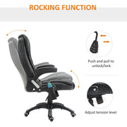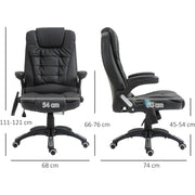 The massage office chair from HOMCOM combines traditional style and comfortable features. The heat and massage functions operate independently, giving you the freedom to customise your experience, with the faux leather design making it a classic executive design. Thick padding for comfort, tall back and armrests for support. Completed with five wheels on the base.