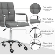Let the effortless combination of style and comfort lead the way in your home office - choose this swivel chair from Vinsetto. Padded seat and back, with fixed armrests and a high back offer comfort and support. The height is adjustable via the under-seat lever. A heavy-duty base for support is fitted with five wheels for easy movement. Work wherever, whenever.