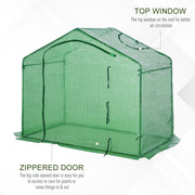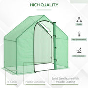Bring your gardening dreams to life with this mini greenhouse from Outsunny. With a sturdy steel frame and included accessories for added stability, you can confidently grow your favourite plants, veggies, and more all year round. The plastic cover not only protects your plants from mild weather but also shields them from harmful UV rays. The walk-in design offers ample space and the back window allows for easy ventilation while the front zipper door ensures convenient access. Setting up this greenhouse is a breeze - put it up and start enjoying the fruits of your labour.
