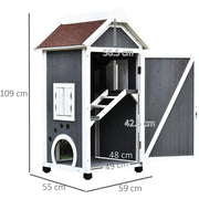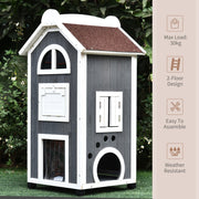 Wooden Cat Shelter, 2 Floors - Grey & White