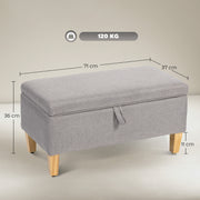 Light Grey 30L Linen Storage Ottoman with Padded Seat and Wooden Legs for Bedroom or Hallway - 71x37x36cm