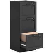 Black Lockable 3 Drawer Office Filing Cabinet With Smooth Rolling Wheels For Home Office 40W x 40D x 101H cm
