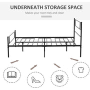 Normally people spend an average of 6 to 8 hours sleeping, good sleep starts with a good bed, so it's essential to find a good bed frame. This bed frame from HOMCOM is made from sturdy metal material, features scratch-resistance and rust-resistance, durable for long-term use. Besides, the spacious storage space under the bed makes your room tidy and clean, and it's also easy to assemble. HOMCOM is here to elevate your sleep experience and help everyone to enjoy their nighttime.