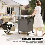 The sturdy table fits neatly on your patio and is easy to move around. With handy storage and a strong frame, it’s simple to keep your tools, spices, and drinks tidy and ready to use.