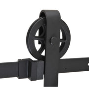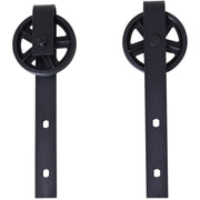 - MODERN DESIGN: Industrial-wheel-style sliding barn-door hardware kit. Turn your normal barn door into a sliding door. Creates a really unique look for home decoration.