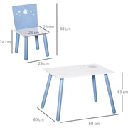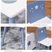 Kids Table and Chairs Set 3 Pieces 1 Table 2 Chairs Toddler Wooden Multi-usage Easy Assembly Star Image Ornament Blue and White