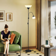 LED Floor Lamp with Uplighter and Adjustable Reading Light for Living Room, Black
