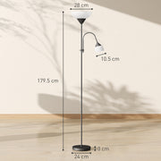 Add a touch of modern charm and practical lighting to your space with this HOMCOM mother-and-child floor lamp. Designed with a tall uplighter and a flexible mid-arm reading light, it offers layered illumination perfect for cosy evenings or focused reading. The sturdy metal frame and classic cone shades combine style with safety, while dual switches give you full control over your lighting. A smart choice for any living room, bedroom or reading nook.