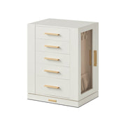 - Elegant and Protective Design: Boasts a cloud white finish with sparkling metal handles and soft velvet lining, housed within a durable MDF frame, providing both style and protection for your valuables.